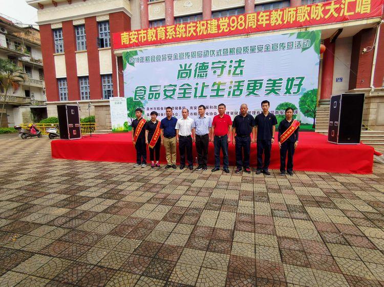 【一】6月27日上午,由泉州市糧食和物資儲(chǔ)備局、南安市發(fā)展和改革局主辦,泉州市糧食行業(yè)協(xié)會(huì)、南安市糧食行業(yè)協(xié)會(huì)、省儲(chǔ)備糧南安直屬庫共同協(xié)辦的“2019年糧食食品安全宣傳周啟動(dòng)儀式”在南安市人民會(huì)堂廣場(chǎng)舉辦。泉州市發(fā)展和改革委員會(huì)黨組成員、副主任鄭華江,南安市政府領(lǐng)導(dǎo)陳江虹,南安市發(fā)展和改革局局長(zhǎng)陳天義、副局長(zhǎng)石林海,泉州市糧食行業(yè)協(xié)會(huì)執(zhí)行會(huì)長(zhǎng)林建全、秘書長(zhǎng)孫伍銘,南安市糧油行業(yè)協(xié)會(huì)會(huì)長(zhǎng)林建德,省儲(chǔ)備糧公司南安直屬庫主任卓成加、南安市糧食購(gòu)銷公司總經(jīng)理戴澤陽、糧油生產(chǎn)經(jīng)營(yíng)企業(yè)代表和相關(guān)工作人員等參加啟動(dòng)儀式。