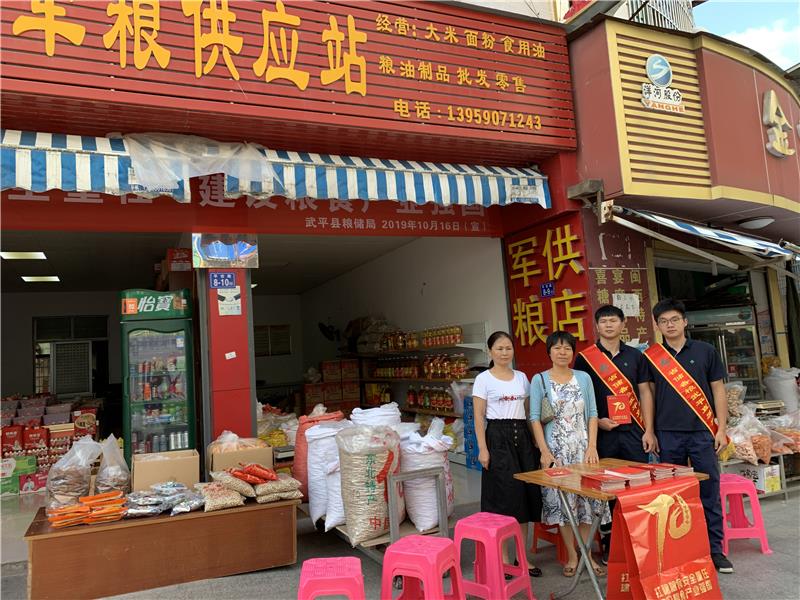 10月16日上午,我?guī)鞎?huì)同武平縣糧食和物資儲(chǔ)備局以“抗穩(wěn)糧食安全重任,建設(shè)糧食產(chǎn)業(yè)強(qiáng)國(guó)”為主題在武平縣軍糧供應(yīng)站及周邊企業(yè)門店、交通要道等地通過(guò)張貼懸掛宣傳標(biāo)語(yǔ)和發(fā)放宣傳手冊(cè)等方式開(kāi)展糧食安全系列主題宣傳活動(dòng)。