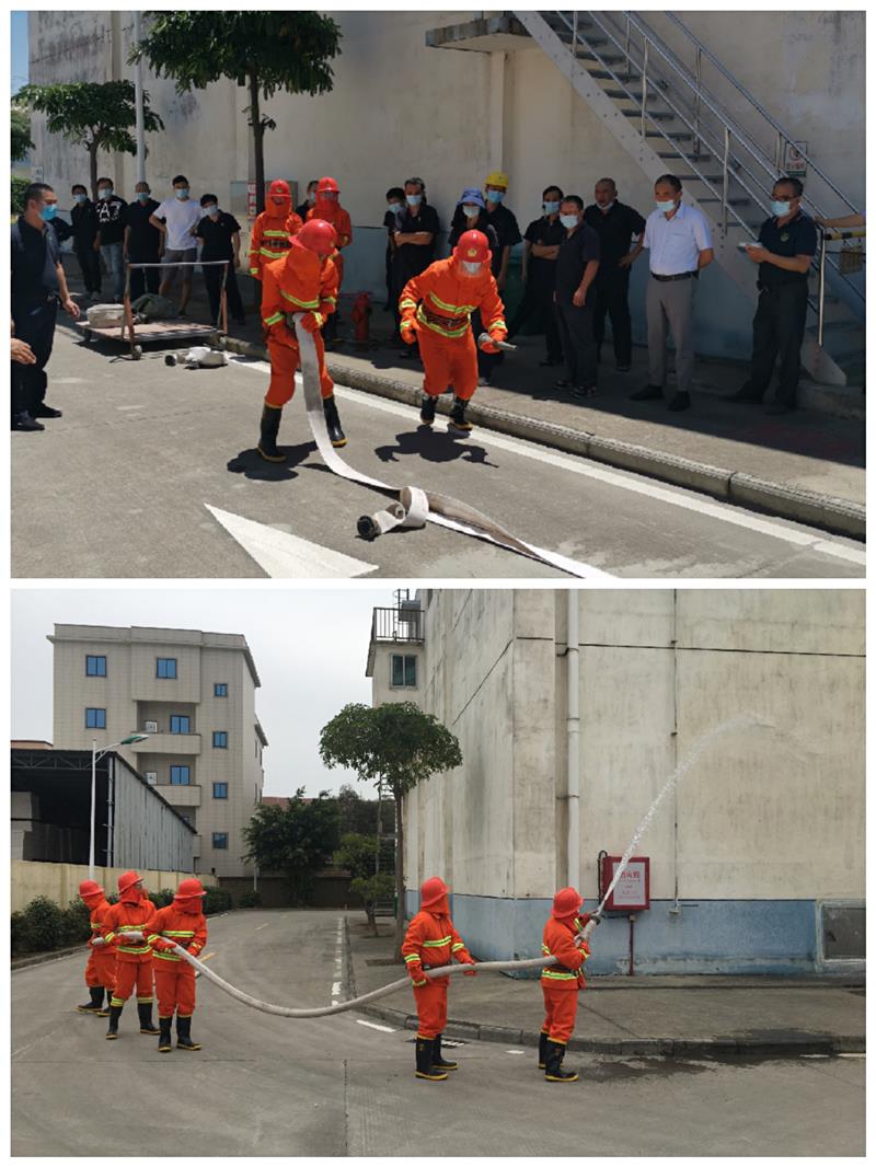 模擬25號(hào)倉(cāng)庫(kù)(糧食)著火,安全技術(shù)專家現(xiàn)場(chǎng)指導(dǎo)消防水帶甩帶、連接及盤卷訓(xùn)練,訓(xùn)練后搶險(xiǎn)救災(zāi)組成員均能在14秒內(nèi)完成水帶連接及出水。