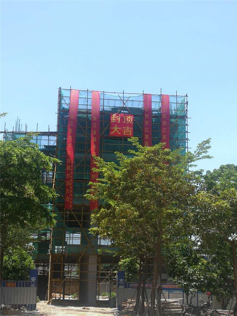 6月27日中午11:30,隨著最后一罐車水泥澆注完畢,晉江直屬庫宿舍樓順利封頂。