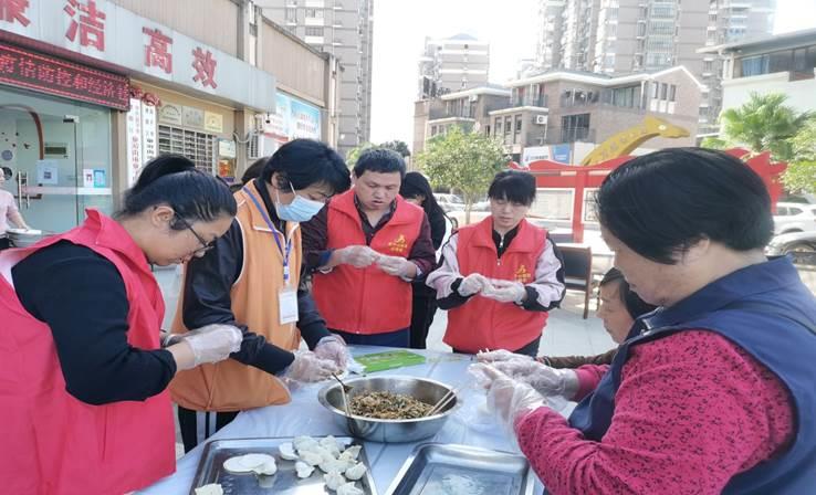 10月23日下午陽光明媚,社區(qū)門口空地上,社區(qū)工作人員、志愿者、社區(qū)老人們歡聚一堂。活動開始,社區(qū)工作人員拿出準備好的材料,志愿者們分組帶領(lǐng)老人動起手來,大家剁肉餡、捏餃子,邊做邊和老人聊天、拉家常,一些志愿者雖然包不好,略顯吃力,但是個個都很認真,邊學邊干著。一個個活潑的身影,一聲聲歡快的笑語,活動現(xiàn)場開始熱鬧起來。