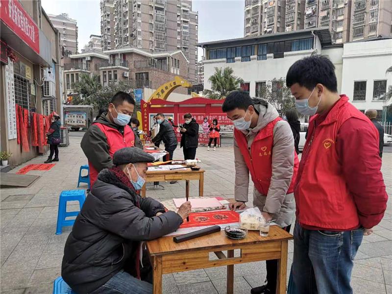 1月26日上午,在新春佳節(jié)即將到來(lái)之際建陽(yáng)儲(chǔ)備庫(kù)志愿者積極參與社區(qū)開(kāi)展“寒冬墨香暖人心,鄰里和諧幸福年”贈(zèng)春聯(lián)活動(dòng)。雖然現(xiàn)在是疫情防控期,但也不影響大家迎新春的熱情。志愿者們戴著口罩在社區(qū)門(mén)前空地忙碌起來(lái),志愿者們搬桌子、倒墨、把春聯(lián)紙攤開(kāi)讓書(shū)法老師揮毫潑墨,再把書(shū)法老師寫(xiě)好的春聯(lián)晾干,忙的不亦樂(lè)乎?,F(xiàn)場(chǎng)書(shū)寫(xiě)的春聯(lián)贈(zèng)送給市民們,市民們愛(ài)不釋手,現(xiàn)場(chǎng)氣氛十分熱烈。
