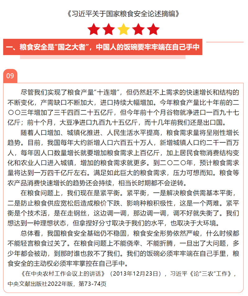 《習(xí)近平關(guān)于國家糧食安全論述摘編》