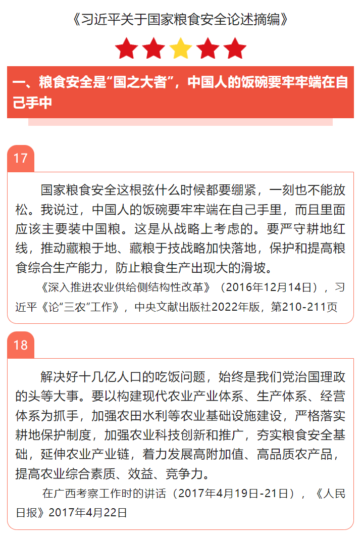 《習(xí)近平關(guān)于國(guó)家糧食安全論述摘編》