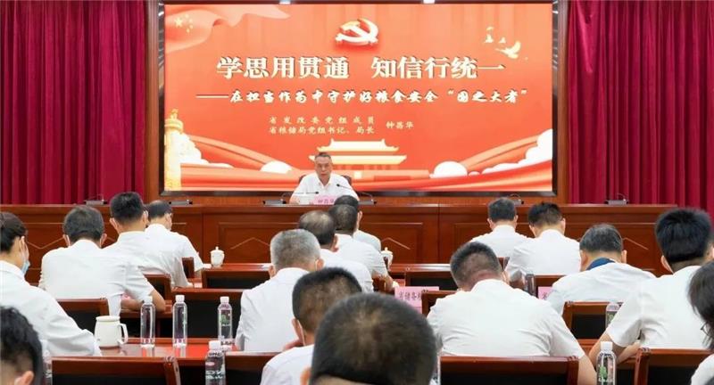為推動(dòng)學(xué)習(xí)貫徹習(xí)近平新時(shí)代中國特色社會(huì)主義思想主題教育走深走實(shí),5月31日,省發(fā)改委黨組成員,省糧儲(chǔ)局黨組書記、局長鐘昌華以“學(xué)思用貫通 知信行統(tǒng)一——在擔(dān)當(dāng)作為中守護(hù)好糧食安全‘國之大者’”為主題,開展主題教育專題黨課。省委主題教育第九巡回指導(dǎo)組成員、省紀(jì)委監(jiān)委駐省委辦公廳紀(jì)檢監(jiān)察組副組長、二級(jí)調(diào)研員石少龍蒞會(huì)指導(dǎo)。