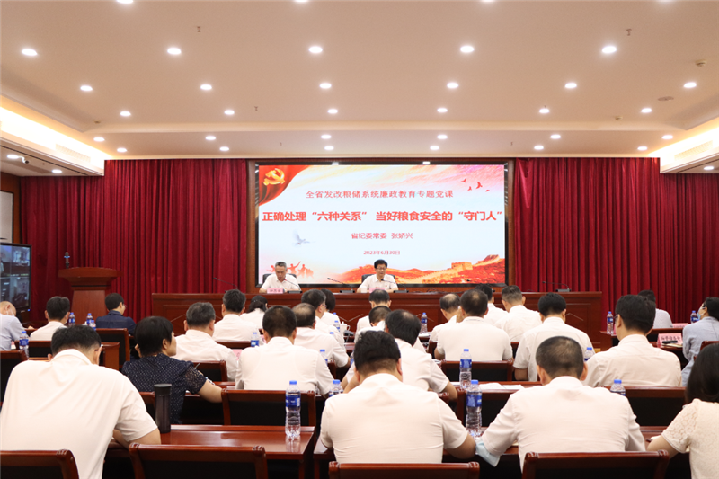 為深入開展學習貫徹習近平新時代中國特色社會主義思想主題教育,持續(xù)深化糧食購銷領域?qū)m椪危瑺I造風清氣正的良好政治生態(tài),6月30日下午,省發(fā)改委、省糧儲局邀請省紀委常委張嬌興同志為全省發(fā)改糧儲系統(tǒng)上廉政教育專題黨課。省發(fā)改委黨組成員,省糧儲局黨組書記、局長鐘昌華主持學習會。