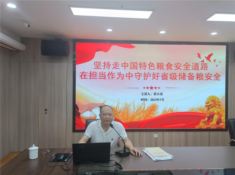 為深入學(xué)習(xí)貫徹習(xí)近平新時(shí)代中國特色社會(huì)主義思想和黨的二十大精神,進(jìn)一步強(qiáng)化公司系統(tǒng)全體干部職工黨性意識(shí),增強(qiáng)黨組織的凝聚力和戰(zhàn)斗力,7月6日,省儲(chǔ)備糧公司舉辦第十三期糧心良語講堂,黨委書記為全體干部職工上“學(xué)習(xí)貫徹習(xí)近平新時(shí)代中國特色社會(huì)主義思想”主題教育專題黨課。公司本部及福州直屬庫干部職工在主會(huì)場參加,其他直屬(儲(chǔ)備)庫干部職工在分會(huì)場參加。