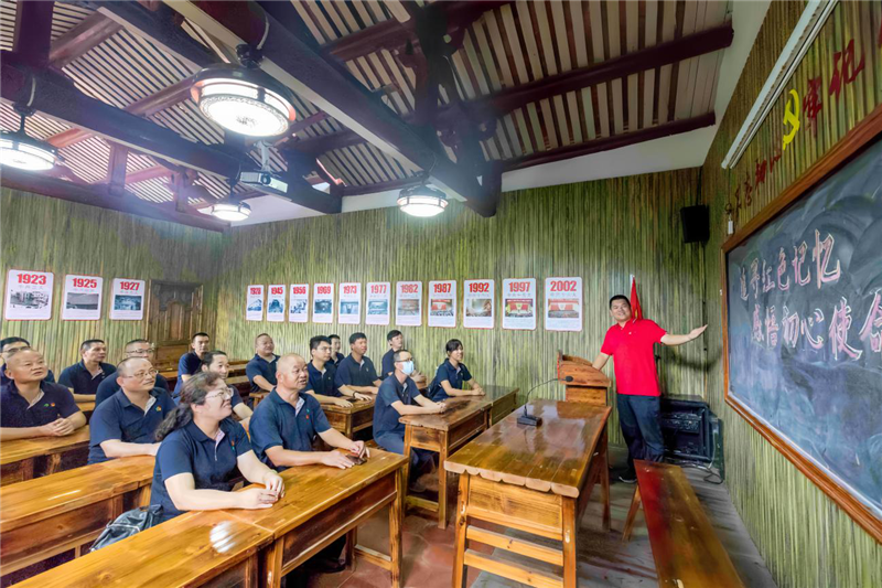 通過參觀上宮支部紀念館、上宮支部發(fā)展史展廳、中國革命發(fā)展史展廳、革命詩畫展廳、革命實物展廳、前往麥斜巖中國工農(nóng)紅軍108團遺址瞻仰108團烈士亭和羅迎祥烈士紀念亭等,全方位、多角度地了解閩中革命戰(zhàn)爭的艱苦卓絕和改革開放以來取得的輝煌成績,感悟先輩為民族獨立和偉大復(fù)興做出的波瀾壯舉。在上宮支部舊址歷史陳列館門前,全體黨員面對鮮紅的黨旗,高舉右手,重溫入黨誓詞,場面莊嚴肅穆,誓言鏗鏘有力。