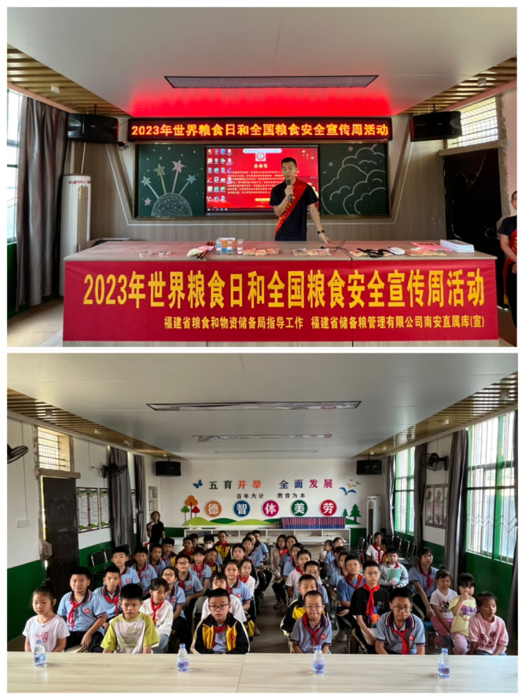 在南安市社莊小學(xué),青年志愿者們向在校師生宣傳習(xí)近平總書記關(guān)于糧食安全的重要論述,并通過生動有趣的PPT引導(dǎo)學(xué)生認識糧食安全的重要性,引導(dǎo)學(xué)生養(yǎng)成愛惜糧食、勤儉節(jié)約的好習(xí)慣。