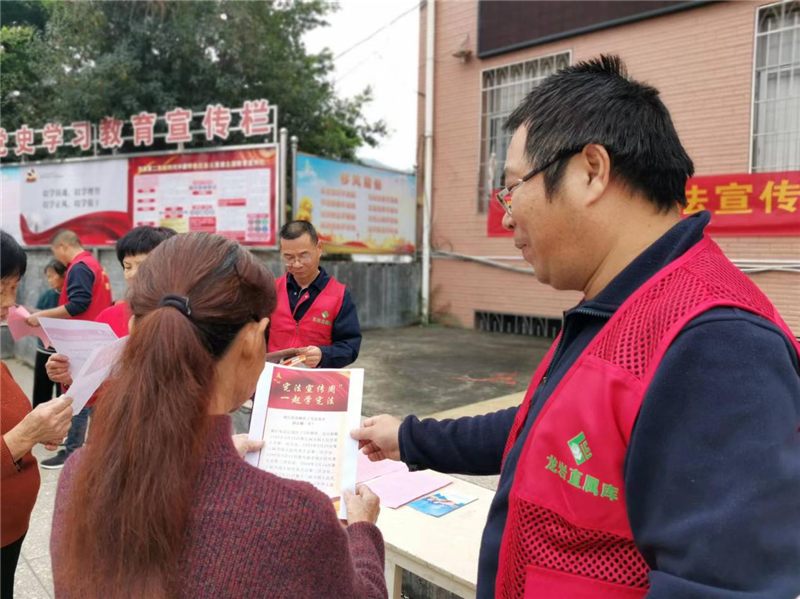 為鞏固學(xué)習(xí)貫徹習(xí)近平新時(shí)代中國(guó)特色社會(huì)主義思想主題教育成果,大力弘揚(yáng)憲法精神,結(jié)合在職黨員進(jìn)社區(qū)“雙報(bào)到”“四下基層”工作要求,12月5日上午,龍巖直屬庫(kù)黨支部與紅坊鎮(zhèn)下洋村黨支部開(kāi)展普法宣傳共建活動(dòng)。