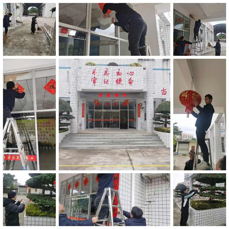 2月8日下午,對(duì)庫(kù)區(qū)環(huán)境大掃除后,全體員工對(duì)辦公樓進(jìn)行了迎新裝飾,貼春聯(lián)、掛燈籠、更新LED迎春內(nèi)容等,營(yíng)造喜氣祥和的節(jié)日氛圍。