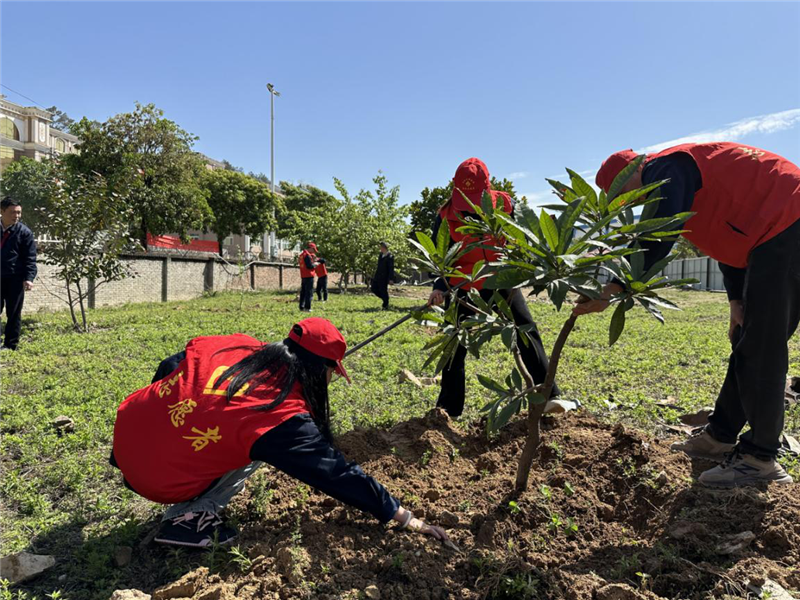 在陽光的照射下,大家個個熱情高漲、干勁十足,有的拿鐵鍬,有的運樹苗,有的澆水、施肥,比干勁、比進度,各個環(huán)節(jié)銜接有序,樣樣做得認真到位,個個忙得不亦樂乎,植樹現(xiàn)場洋溢著歡樂有序的勞動景象。