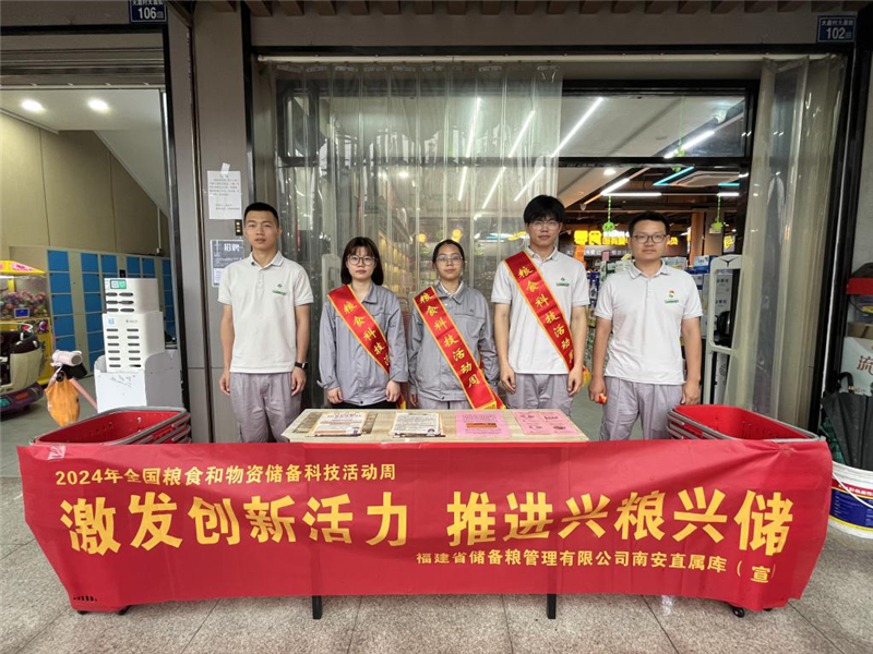 5月22日下午,南安直屬庫組織青年員工開展糧食安全進社區(qū)、進學校、進商戶等特色宣傳活動,從糧食政策、生產(chǎn)、收獲、儲藏、加工、消費等環(huán)節(jié)入手向廣大群眾進行宣講,介紹糧食科技創(chuàng)新帶來的巨大變化,倡導學生和居民節(jié)約糧食、杜絕浪費,帶動群眾關(guān)注糧食科技、關(guān)心糧食安全。