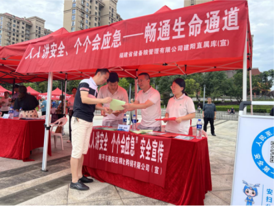 活動現(xiàn)場節(jié)目主持人介紹安全生產(chǎn)咨詢?nèi)?、有獎互動問答等相關(guān)活動內(nèi)容,演繹以安全生產(chǎn)教育為主題的舞蹈類節(jié)目。同時,設(shè)置各相關(guān)單位安全生產(chǎn)咨詢臺,主要以解讀相關(guān)安全知識、發(fā)放安全宣傳單等形式進行宣傳教育,相關(guān)工作人員在現(xiàn)場為公眾科普“安全生產(chǎn)月”活動,并熱心為公眾講解日常用火用電、高層建筑火災(zāi)逃生、電梯安全操作等安全知識,救護工作人員展示應(yīng)急救護措施,并進行現(xiàn)場教授。建陽直屬庫工作人員為現(xiàn)場群眾詳細(xì)解讀國家糧食和物資儲備局近期頒發(fā)的糧食倉儲作業(yè)“十個嚴(yán)禁”、安全生產(chǎn)十大禁令等相關(guān)涉及糧食安全生產(chǎn)知識,讓公眾知曉糧食安全始終是關(guān)系我國國民經(jīng)濟發(fā)展、社會穩(wěn)定和國家自立的全局性重大戰(zhàn)略問題,保障我國糧食安全具有十分重要的意義?;顒赢?dāng)天共設(shè)立咨詢臺30個,擺放展板50余面,發(fā)放宣傳資料3000余份,現(xiàn)場接受群眾咨詢千余人次。