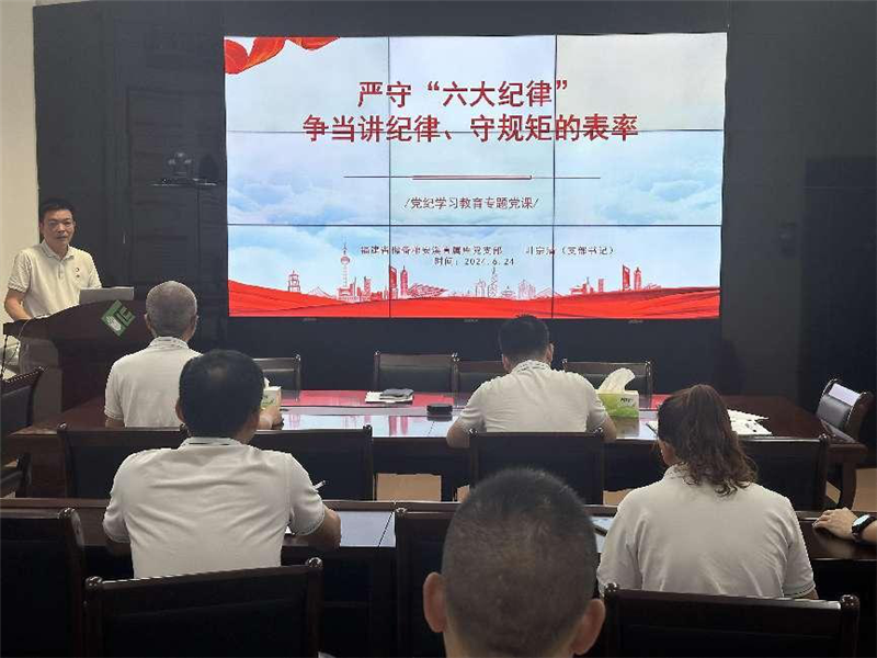 為深入學(xué)習(xí)貫徹習(xí)近平總書記關(guān)于黨紀(jì)學(xué)習(xí)教育的重要講話和重要指示精神,引導(dǎo)黨員干部真正做到學(xué)紀(jì)、知紀(jì)、明紀(jì)、守紀(jì),推動黨紀(jì)學(xué)習(xí)教育走深走實,6月24日下午,安溪直屬庫黨支部書記葉宗清為支部全體黨員上了一堂以《嚴(yán)守“六大紀(jì)律”,爭當(dāng)講紀(jì)律、守規(guī)矩的表率》為主題的黨紀(jì)學(xué)習(xí)教育專題黨課。