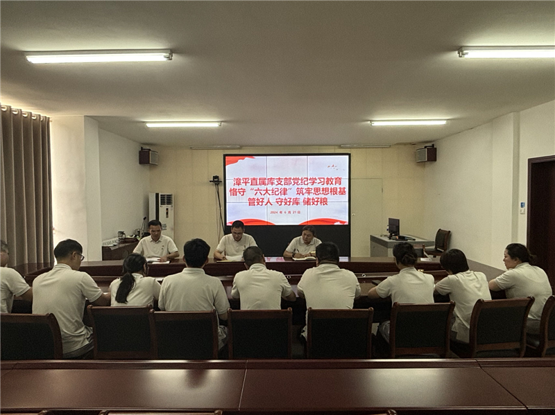 為深入開展黨紀(jì)學(xué)習(xí)教育,進(jìn)一步加強(qiáng)漳平直屬庫全體干部職工的紀(jì)律意識,推進(jìn)黨紀(jì)學(xué)習(xí)教育走深走實,真正做到學(xué)紀(jì)、知紀(jì)、明紀(jì)、守紀(jì),6月21日下午,漳平直屬庫支部書記陳樟華以《恪守“六大紀(jì)律” 筑牢思想根基 管好人 守好庫 儲好糧》為主題為全體干部職工講授黨紀(jì)學(xué)習(xí)教育專題黨課。