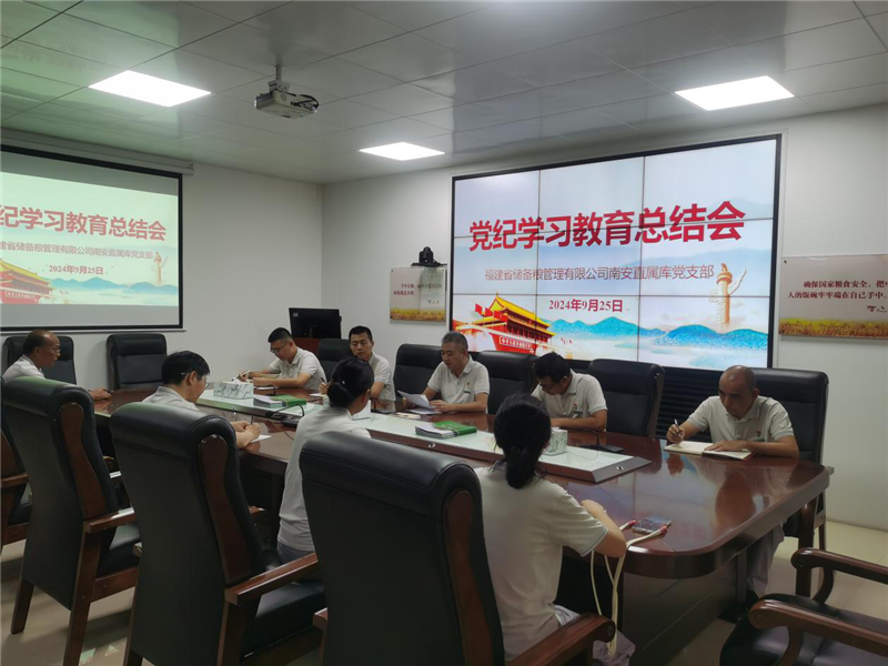 9月25日,南安直屬庫召開黨紀(jì)學(xué)習(xí)教育總結(jié)會(huì)議,認(rèn)真學(xué)習(xí)習(xí)近平總書記關(guān)于黨紀(jì)學(xué)習(xí)教育的重要指示、中央黨的建設(shè)工作領(lǐng)導(dǎo)小組會(huì)議精神,傳達(dá)學(xué)習(xí)全黨開展黨紀(jì)學(xué)習(xí)教育綜述及福建高標(biāo)準(zhǔn)高質(zhì)量開展黨紀(jì)學(xué)習(xí)教育綜述和9月2日省委常委會(huì)會(huì)議精神,全面總結(jié)南安直屬庫黨紀(jì)學(xué)習(xí)教育開展情況,部署推動(dòng)常態(tài)化長(zhǎng)效化工作。支部書記、主任卓芳華主持會(huì)議并講話。