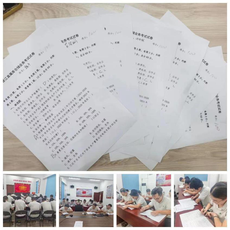 以考促學(xué),首先進(jìn)行的是倉(cāng)儲(chǔ)業(yè)務(wù)知識(shí)測(cè)試,采取閉卷方式全員參與,內(nèi)容涵蓋安全生產(chǎn)、安全儲(chǔ)糧等倉(cāng)儲(chǔ)業(yè)務(wù)知識(shí)。從測(cè)試結(jié)果看,大家備考充分、基礎(chǔ)比較扎實(shí),成績(jī)優(yōu)秀。