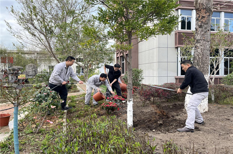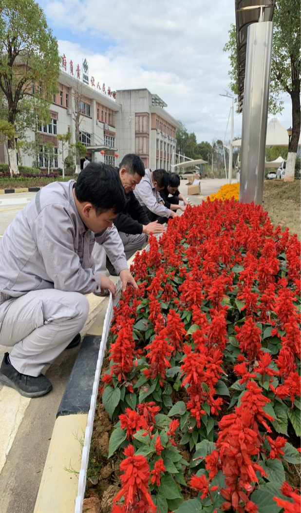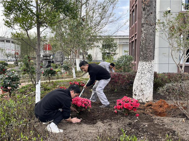 在種植過程中,黨員們分工協(xié)作,揮鍬鏟土、扶苗填坑、提水澆灌,每一個(gè)環(huán)節(jié)都做得認(rèn)真細(xì)致。黨員們還相互交流育花經(jīng)驗(yàn),現(xiàn)場(chǎng)氣氛熱烈,充分展現(xiàn)了黨員團(tuán)結(jié)協(xié)作、積極向上的精神風(fēng)貌。