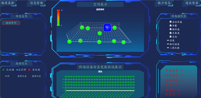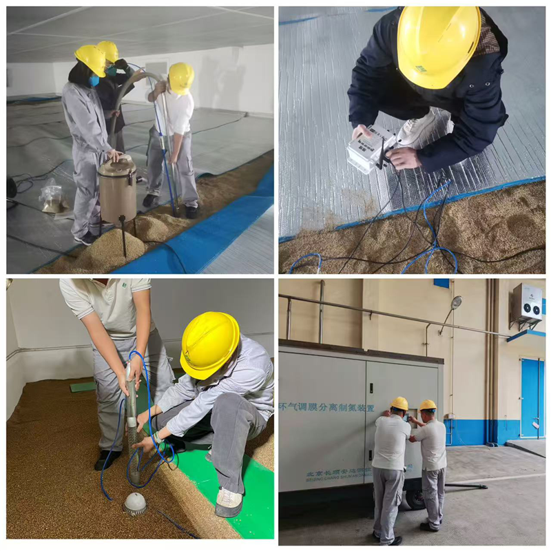 在P3號倉部署的多參數(shù)糧情監(jiān)測系統(tǒng),可實時采集溫度、濕度、CO?濃度等數(shù)據(jù),并將監(jiān)測數(shù)據(jù)與蟲霉生長預(yù)測結(jié)果同步推送至手機APP,為管理人員提供糧情預(yù)警、處置建議等決策支持,有效降低蟲霉損耗風險,提升倉儲管理精準度。P9號倉則創(chuàng)新采用"儲糧害蟲自動識別監(jiān)測+充氮氣調(diào)"雙聯(lián)防控模式,實時監(jiān)測充氮倉糧堆蟲害情況,可實現(xiàn)充氮倉在氣調(diào)期間人員不入倉檢查糧情,提升糧情檢查安全系數(shù)。