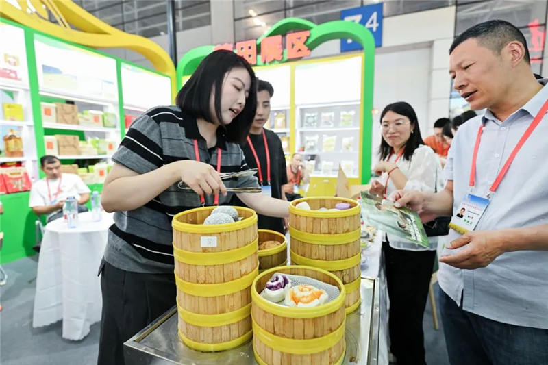 館內最吸引人的,莫過于各家企業(yè)推出的試吃環(huán)節(jié)。福州展區(qū)里,中糧谷面帶來的包子饅頭面白色柔,松軟可口;莆田館的鑫福樂用實力詮釋面點的可能性,平時樸實無華的米面產品與蔬果激情碰撞,成為了形態(tài)各異的小豬奶黃包、土豆叉燒包;泉州展區(qū)的煎餃香味誘人,汁水四溢;龍巖展區(qū)的黑芝麻糕、桂花糕將八珍好料與優(yōu)質米面結合,口感厚實,富有層次;三明展區(qū)內,廚神公司將灶臺邊的“煙火氣”帶到現(xiàn)場,現(xiàn)烹現(xiàn)制的拌面拌粉口感勁道,油而不膩;寧德展區(qū)更是將魚丸肉片這道地地道道的福建傳統(tǒng)美食,搬上了活動現(xiàn)場,聞到這股鮮味,哪個福建人的DNA不動呢?