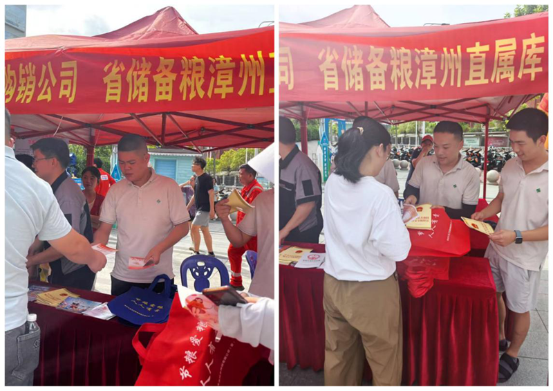 啟動儀式現(xiàn)場氣氛熱烈,內容豐富多樣。漳州直屬庫員工志愿者通過發(fā)放安全生產宣傳資料及講解《中華人民共和國糧食安全保障法》等方式向廣大群眾宣傳安全生產知識和保障糧食安全的重要性,以此提高人民群眾對安全生產和愛糧節(jié)糧重要性的認識。