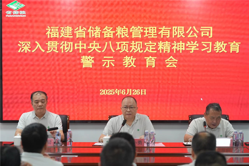 6月26日,省儲(chǔ)備糧公司系統(tǒng)深入貫徹中央八項(xiàng)規(guī)定精神警示教育會(huì)在仙游召開。會(huì)議深入學(xué)習(xí)貫徹習(xí)近平總書記關(guān)于加強(qiáng)黨的作風(fēng)建設(shè)的重要論述精神,貫徹落實(shí)上級(jí)警示教育會(huì)精神,通報(bào)部分典型案例,以警示教育促作風(fēng)建設(shè)助推省級(jí)儲(chǔ)備糧事業(yè)再上臺(tái)階。公司黨委書記、董事長黃小勇主持會(huì)議并講話。