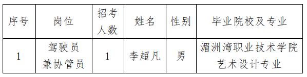 根據(jù)《福建省儲備糧管理有限公司莆田直屬庫駕駛員兼協(xié)管員招聘方案》,經(jīng)報名、審核篩選、面試、體檢等程序,擬采用勞務派遣方式聘請1名駕駛員兼協(xié)管員,現(xiàn)予以公示。